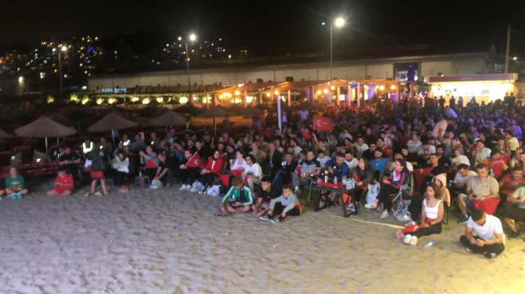 Büyükşehir Belediyesi tarafından Hüdavendigar Kent Parkı ve Burfaş Mudanya Plajı’nda hazırlanan alanları saatler öncesinden dolduran Bursalılar, ellerinde Türk Bayrakları ile ‘Bizim Çocuklar'a destek oldu. Özellikle Hüdavendigar Kent Parkı’nda kurulan dev ekran alanına akın eden vatandaşlar, meşaleler eşliğinde maçı takip etti. A Milli Futbol Takımımızın attığı golle büyük bir coşku yaşayan Bursalılar, maçın sonlarına doğru arka arkaya yenilen iki gole üzülse de maçın son dakikasına kadar desteklerini kesmedi. Milli heyecanı omuz omuza yaşayan Bursalılar, maç sonunda terlerinin son damlasına kadar mücadele eden futbolcuları alkışladı.