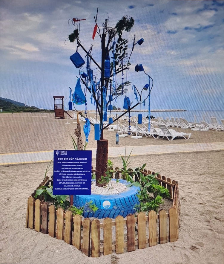 Sahillerdeki temizlik etkinliklerinde elde edilen kapaklarla ‘mavi bayrak’ temalı pano oluşturulurken, plastik şişelerden gemi maketi yapılarak çevre kirliliğine dikkat çekildi. Çevreye gelişigüzel atılan ve denizlerden çıkartılan lastikler ise ekipler tarafından atölyede temizlenip boyandıktan sonra balık figürü olarak tasarlanıp duvarları süsledi. Geri dönüşüm amacıyla çöpe atılan varilleri de değerlendiren ekipler, temizlik, bakım ve boyamanın ardından bitki ve çiçek saksısı olarak kullanılmasını sağladı. Kullanım ömrünü ve amacını tamamlamış olan paletler de gerekli işlemlerden geçirildikten sonra sahillerde oturma bankı olarak değerlendirdi. Büyükşehir Belediyesi’nin tekrar geri kazandırdığı ürünler, Marmara Belediyeler Birliği tarafından bu yıl “Tüm mümkünlerin kıyısında” temasıyla düzenlenecek Marmara Urban Forum’da (MARUF25) sergilenecek.