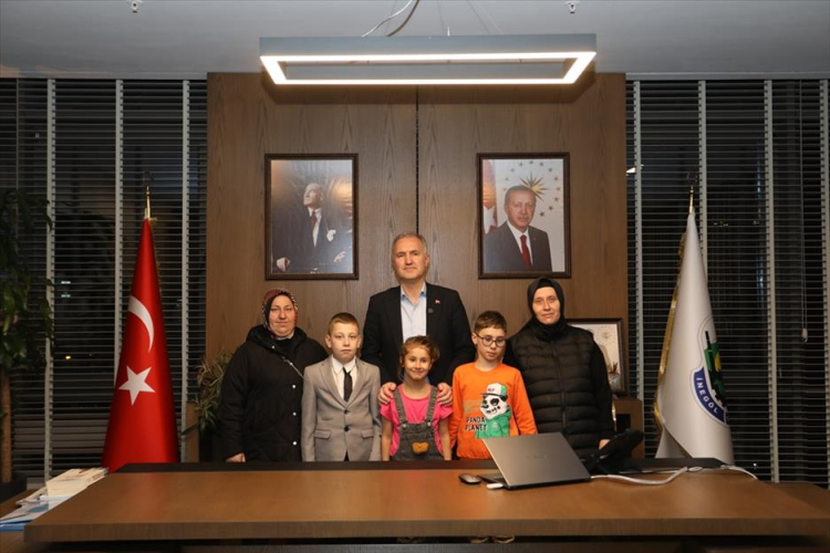Belediye Başkanı Alper Taban ile otizmli çocuklar ve ailelerinin katıldığı özel buluşma dan önce Hacer Salih Yıldız İlkokulunda eğitim gören otizmli öğrenci Yasin Emir Yurttutan ile Kaşıkçı Ortaokulu öğrencisi Alperen Şen’i aileleriyle beraber makamında misafir etti.