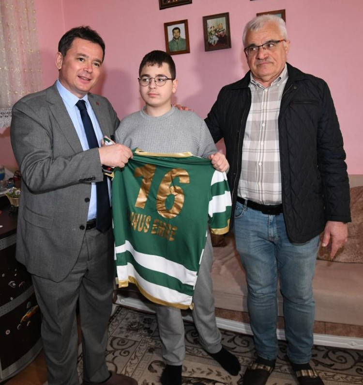 Yunus Emre’nin doğum gününü kutlamak amacıyla evini ziyaret etti ve Yunus Emre Erdem’in mutluluğuna ortak oldu.