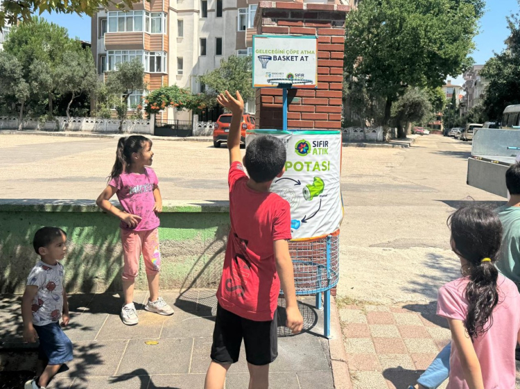 Karacabey Belediyesi sıfır atık hareketini bu kez parklarda konumlandırdığı basket potalarıyla eğlenceli hale getirdi.