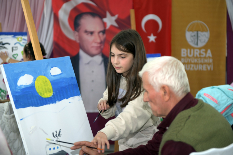 Osmangazi Belediyesi Hüdavendigar Yetenek Evi Resim Sınıfı öğrencileri huzur evi sakinleriyle bir araya geldi.