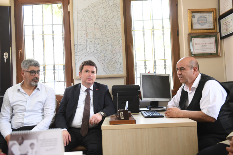 Başkan Aydın, Güneştepe Mahalle Muhtarı Savcı Akgün’ü makamında ziyaret ederek mahallenin yetkilisi ile bire bir görüştü.