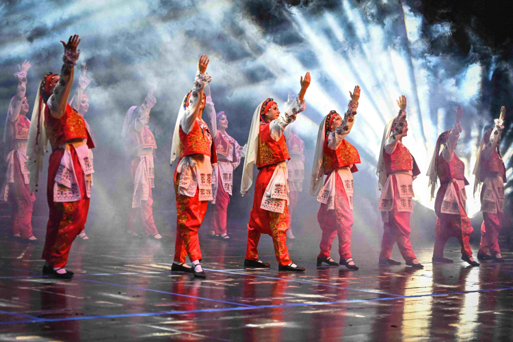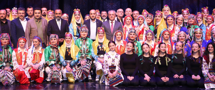 “Göçün kadınları – Anadolu’ya uzanan yol” temalı halk oyunları gösterisi, Merinos Atatürk Kongre ve Kültür Merkezi Osmangazi Salonunu dolduran seyirciler tarafından ayakta alkışlandı.