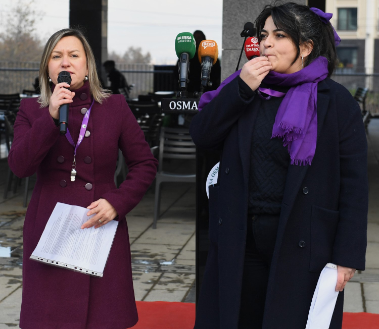 Basın açıklamasına Osmangazi Belediye Başkanı Erkan Aydın, Osmangazi Kent Konseyi Başkanı Fatma Çil Yılmaz, Osmangazi Kent Konseyi Kadın Meclisi Başkanı Sevgi Baysal, belediyedeki kadın personeller ile kadına yönelik şiddete dur diyen onlarca kadın katıldı.